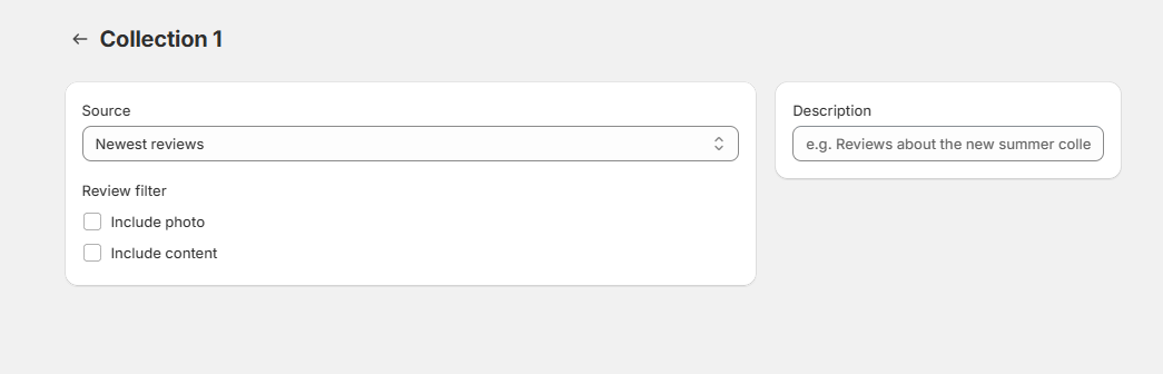 1. Select a review source (collections/current product page)